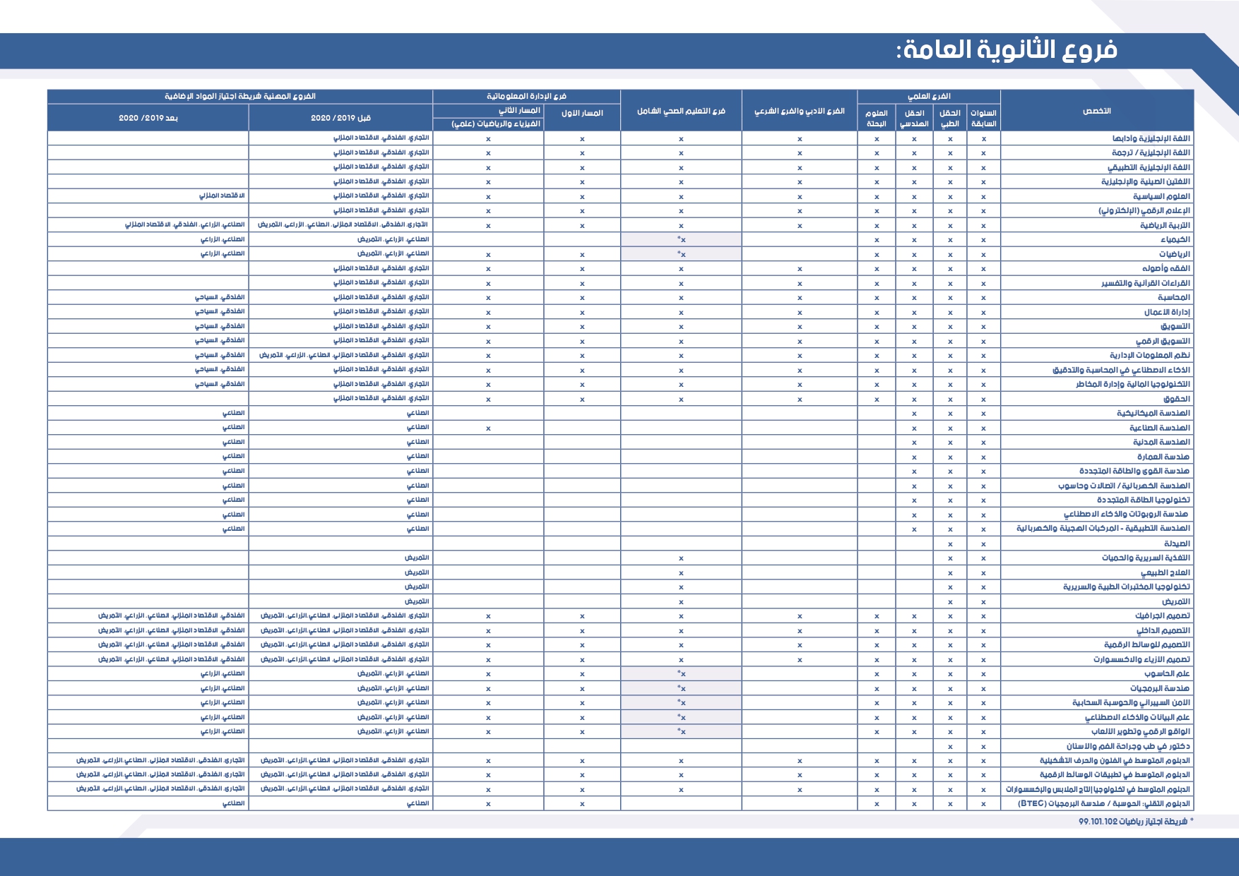 لتحميل فروع الثانوية العامة المؤهلة للقبول في برامج البكالوريوس و الدبلوم المتوسط انقر هنا
