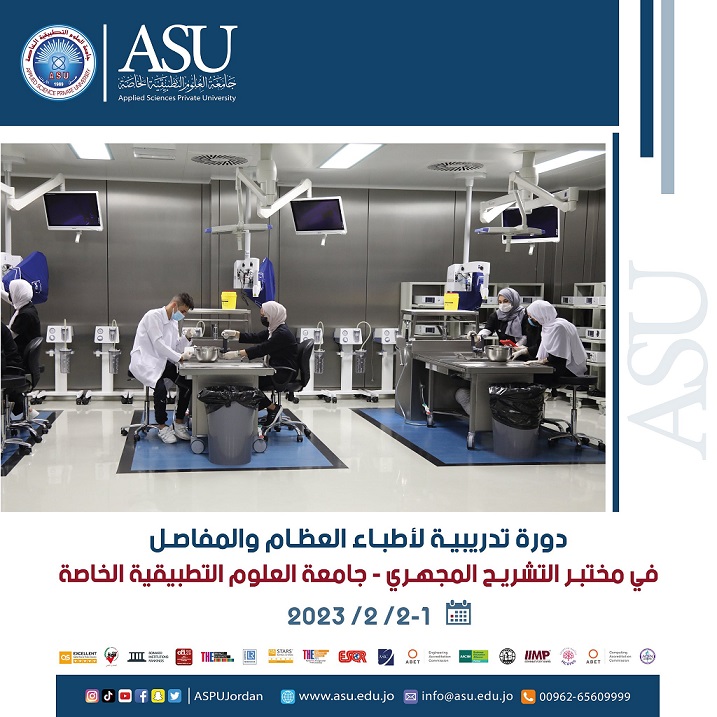 يعلن مختبر التشريح المجهري في جامعة العلوم التطبيقية الخاصة وبالتعاون مع مجموعة جراحة الإصابات الرياضية والمناظير الأردنية عن عقد دورة تدريبية لأطباء العظام والمفاصل في الجراحات المجهرية لترميم أربطة الركبة.