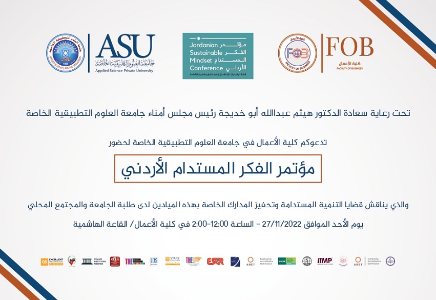 مؤتمر الفكر المستدام الأردني في كلية الأعمال بالتطبيقية، حضوركم يشرفنا...