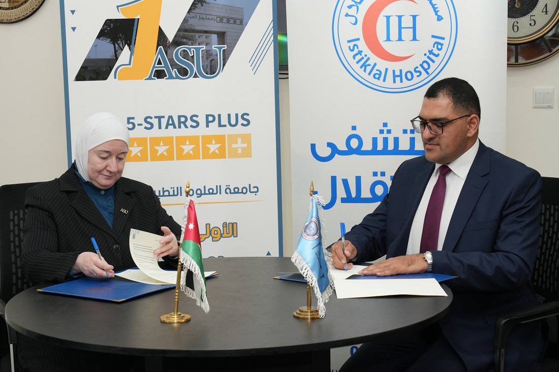 حيث وقع الاتفاقية رئيس الجامعة الأستاذ الدكتور سميحة جراح ومدير عام شركة البلاد للخدمات الطبية السيد أحمد الأحمد، بحضور عميد كلية الصيدلة د. سمر ذياب ومساعد العميد لشؤون التدريب د. ليث الشديفات وحضور كل من نائب مدير المستشفى ومسؤول التعليم المستمر في مستشفى الاستقلال.