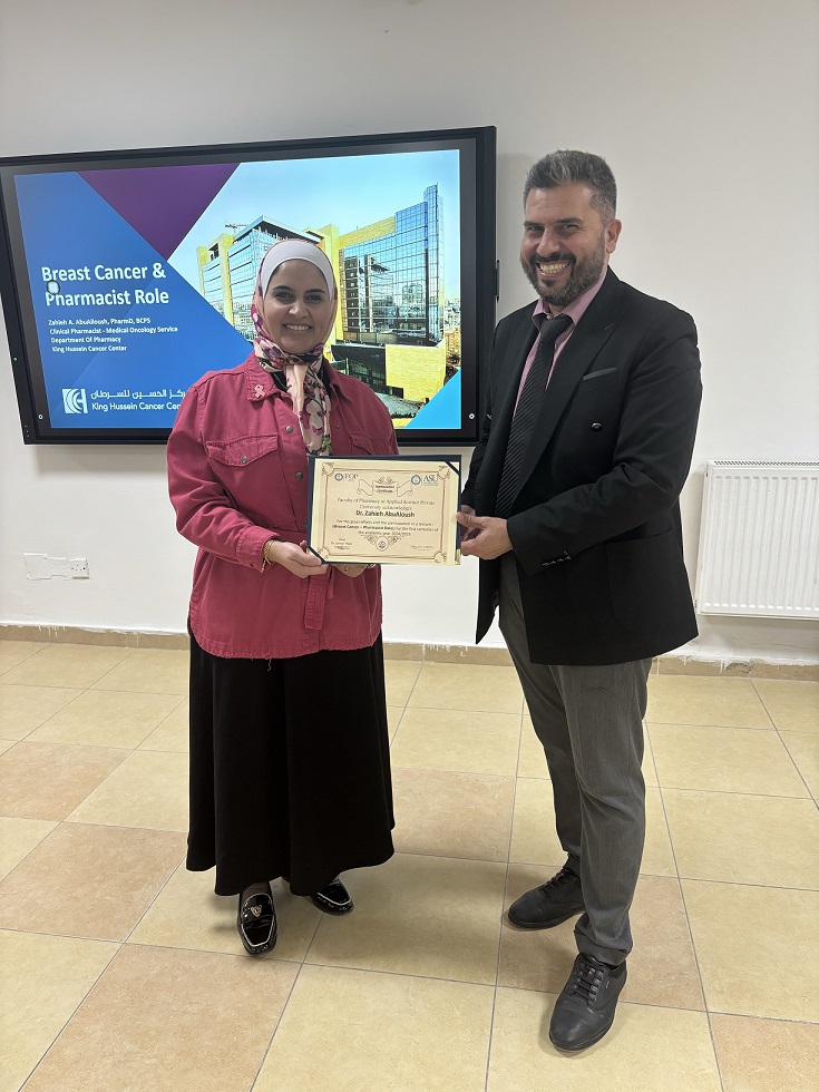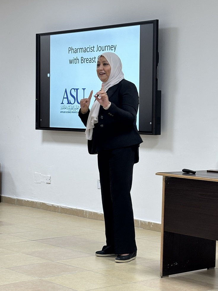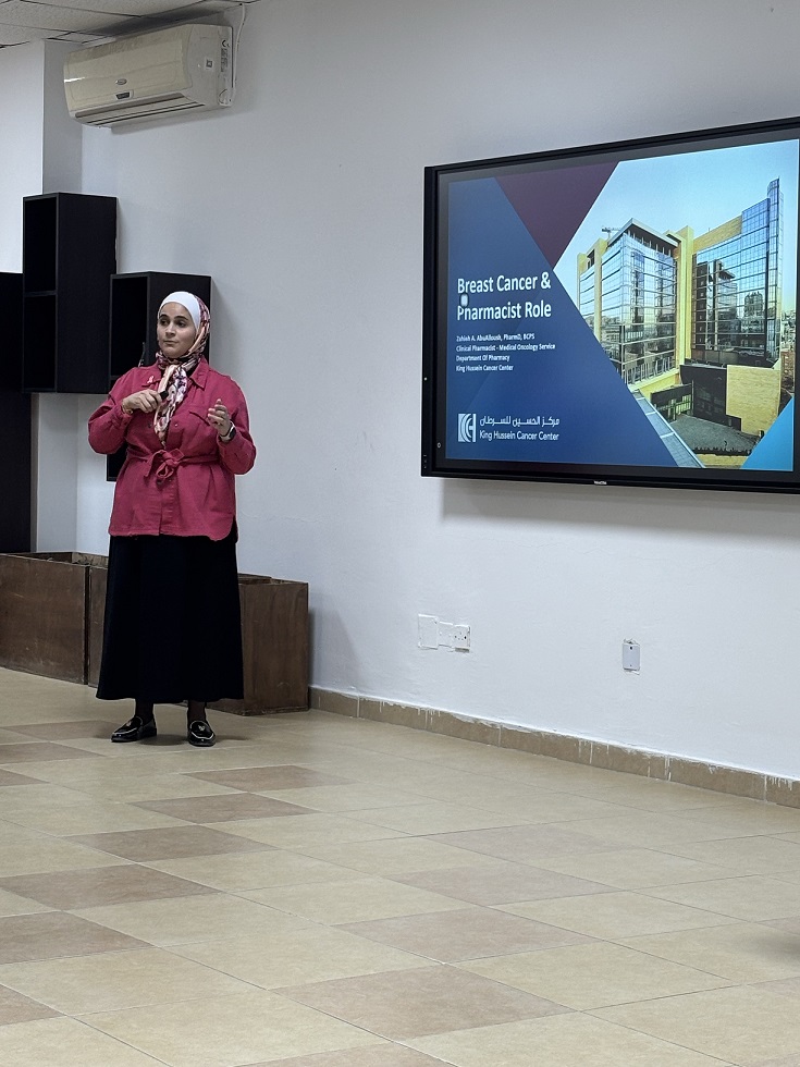 رحلة ومسيرة ملهمة من واقع حياة الصيادلة تم مشاركتها في كلية الصيدلة يوم الأربعاء 2024-6-11 ، حيث نظمت ورشة فريدة بعنوان: (( سرطان الثدي - دور الصيدلي )) تبدأ رحلة مريض سرطان الثدي منذ لحظة التشخيص، حيث يتم وضع خطة علاجية شاملة تتضمن خطوات متسلسلة بناءً على نوع المرض وحالة المريض وأهمية متابعة كل جزء من خطة العلاج، و ملاحظة أدق التفاصيل والملاحظات التي من شأنها تقليل المضاعفات والآثار الجانبية المحتملة، بالإضافة إلى تقديم النصائح والدعم الذي يسهم بشكل أساسي في تحقيق الشفاء للمريض. وفي الجانب الآخر تم وصف و شرح إحدى تجارب الناجين منه وكيفية صنع التغيير، وضرورة التزام الشخص بإعادة التوازن الصحي لجميع جوانب حياته الذي ينتج عنه فكر وحياة جديدة. ثم أثري نقاش بأحدث الاكتشافات والأبحاث الرائدة في علاج سرطان الثدي، ومدى تقدمها وقدرتها على تقديم حلول فعّالة وآمنة تسهم في رفع نسب الشفاء وتقليل الآثار الجانبية.