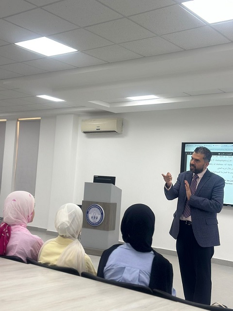 وقام د. لؤي سعادة مقرر مجموعة الممارسة الصيدلانية بعرض نقاش تفاعلي مع الطلبة حول حالات من قواعد بيانات التدريب وتفاعل الحضور بطرح الأسئلة المهمة مما أدى إلى زيادة الوعي بمتطلبات التدريب لتفادي الأخطاء وتحسين مخرجات التعليم والتدريب في الكلية وفق الشعار المعتمد للمجموعة: