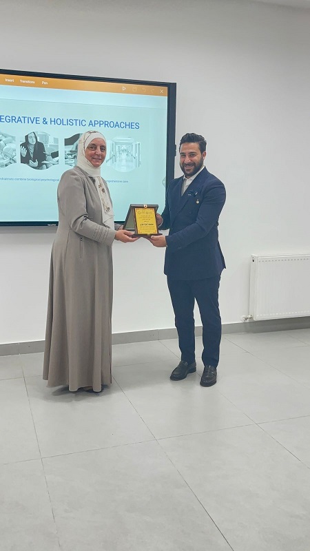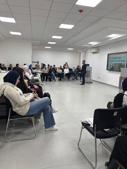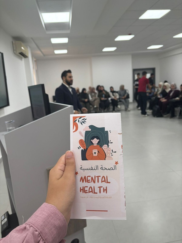 انطلاقاً من اهتمام الكلية بطلابها في جميع النواحي والتي تحقق للطالب التوازن العلمي والترفيهي والنفسي، ونظراً لاقتراب موعد امتحانات منتصف الفصل وما يتعرض له الطالب من ضغط نفسي، عقدت لجنة خدمة المجتمع في كلية الصيدلة ورشة تفاعلية بالصحة النفسية قدمها د.محمد أواب أبو دنون بعنوان: "الصحة النفسية ضرورة وليست ترفاً" حيث لاقت إقبالاً كبيراً من الطلاب سواء بالحضور أو التفاعل مع المحاضر.