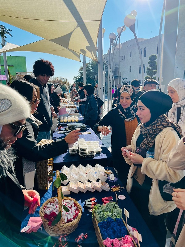 حيث أقامت الكلية بازارها الخيري السنوي السادس عشر بعنوان " بلمسة الشيف الصيدلاني" يوم الخميس الموافق 18/12/2025 تحت رعاية عميد كلية الصيدلة د. سمر ذياب ومقرر اللجنة د. منال عياش وبحضور أعضاء الهيئتين التدريسية والإدارية وطلاب وطالبات الجامعة