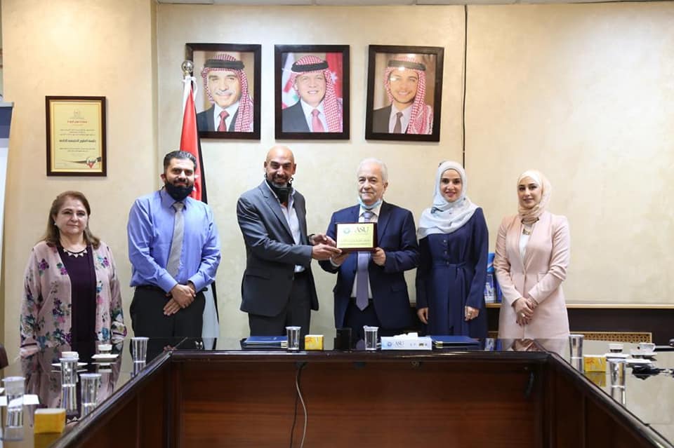تم توقيع اتفاقية تعاون بين كلية الصيدلة بجامعة العلوم التطبيقية الخاصة ممثلة بعميدها أ.د إيمان البشيتي ونقابة صيادلة الأردن يمثلها نقيب الصيادلة الدكتور زيد الكيلاني.