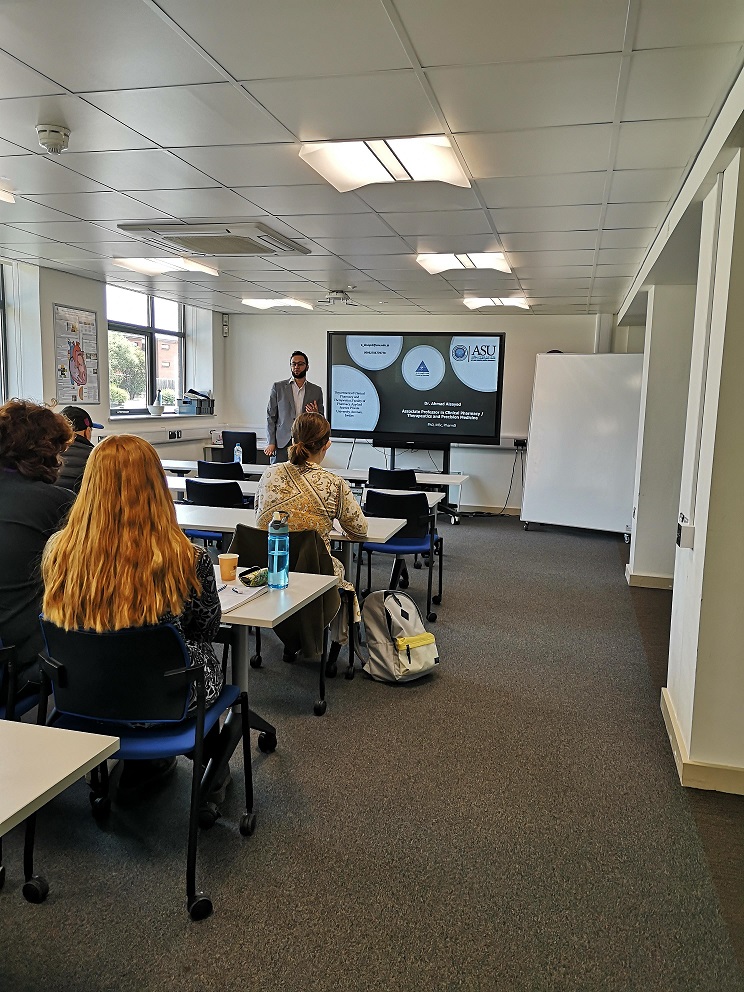 السيد من كلية الصيدلة في جامعة العلوم التطبيقية الخاصة بزيارة جامعة لينكولن في بريطانيا والتي تعد إحدى مؤسسات التعليم العالي الرائدة في أوروبا، وتأتي الزيارة ضمن اتفاقيات التبادل الأكاديمي والطلابي Erasmus+ International Credit Mobility الموقعة من قبل مكتب العلاقات الدولية في جامعة العلوم التطبيقية الخاصة ومجموعة من الجامعات الأوروبية، وتضمنت الزيارة لقاءً مع عدد من أعضاء الهيئتين التدريسية والإدارية بالاضافة إلى زيارات ميدانية لمختبرات وكليات الجامعة، وقدم الدكتور أحمد السيد عرضاً تقديمياً عن جامعة العلوم التطبيقية الخاصة وكلياتها وبرامج البكالوريوس والماجستير التي تقدمها بالاضافة الى تقديمه محاضرة بحثية في اليوم العلمي و مشاركته في عدة نشاطات بحثية و أكاديمية ومنها: