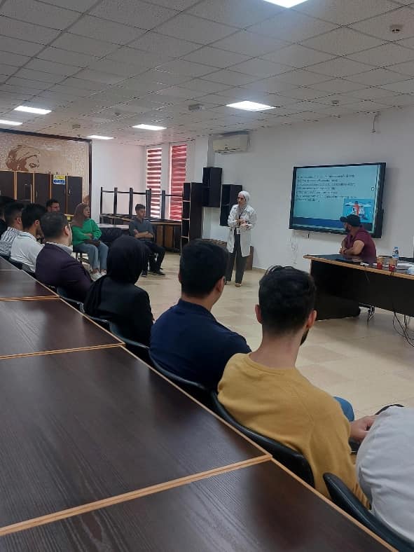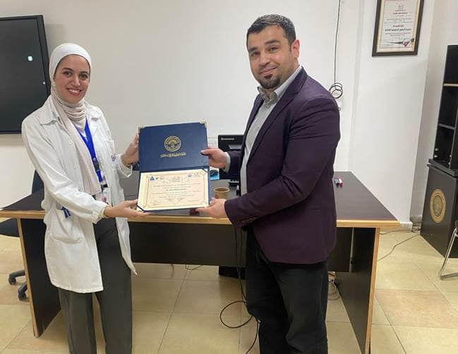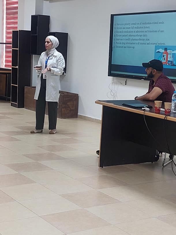 أقامت مجموعة الممارسة الصيدلانية في كلية الصيدلة بجامعة العلوم التطبيقية الخاصة يوم الإثنين الموافق 23/10/2023 ورشة تفاعلية بعنوان " التدريب في المستشفيات"، حيث قامت بتقديمها الصيدلانية السريرية د. زين السويلمين من مستشفى ابن الهيثم، وتم خلال المحاضرة استعراض عدد من المهام التي يقوم بها الصيدلاني في المستشفيات مع التطرق إلى النقاط المهمة التي يجب التركيز عليها أثناء التدريب المتقدم في المستشفيات، ذكر عدد من النقاط التي يجب الإلتزام بها من قبل الطالب، و انتهت المحاضرة بعرض مثال فعلي لحالة سريرية و تبادل الآراء عن الآلية الصحيحة لعلاجها.