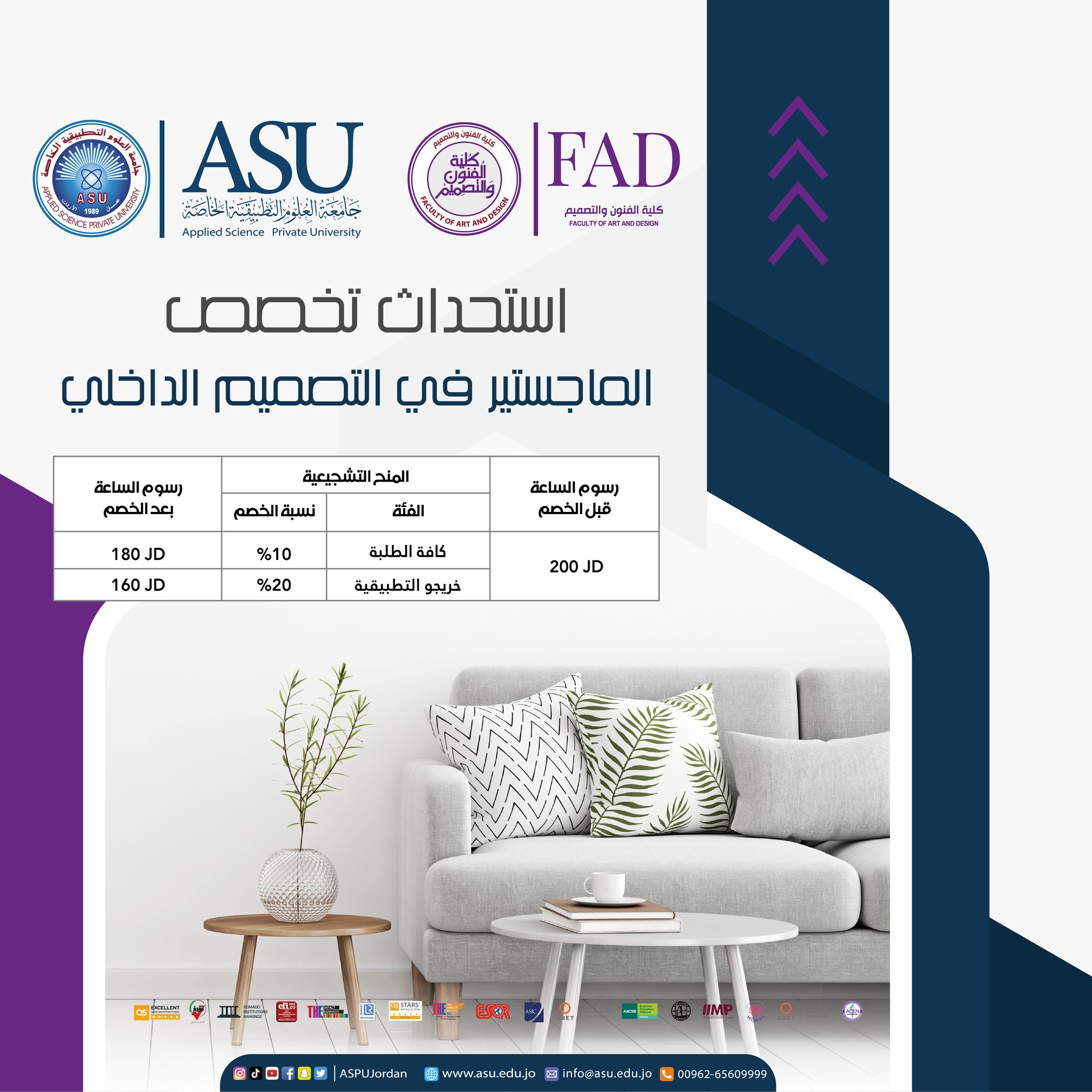 يعلن قسم التصميم الداخلي/ كلية الفنون والتصميم بالتطبيقية عن بدء التسجيل في البرنامج الجديد "الماجستير في التصميم الداخلي".