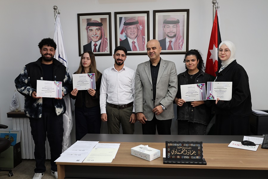 أُقيم حفل التكريم بحضور الأستاذ الدكتور عماد الفحماوي عميد كلية الفنون والتصميم، والدكتور سعيد الحمود رئيس قسم التصميم الداخلي، والأستاذ بهاء المعلا، حيث تسلّم عميد الكلية شهادة تقدير باسم الجامعة نظير المشاركة الفاعلة والنتائج المتميزة لطلبتها.