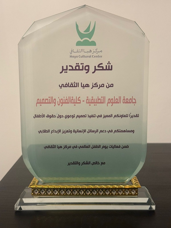 في إطار تعزيز الدور المجتمعي الذي تضطلع به كلية الفنون والتصميم واهتمامها بالقضايا الإنسانية والتربوية، نُفّذ عمل توعوي مميز حول حقوق الطفل، بهدف نشر الوعي وتعزيز ثقافة احترام الطفل وحمايته.