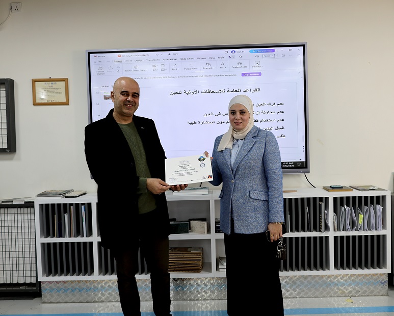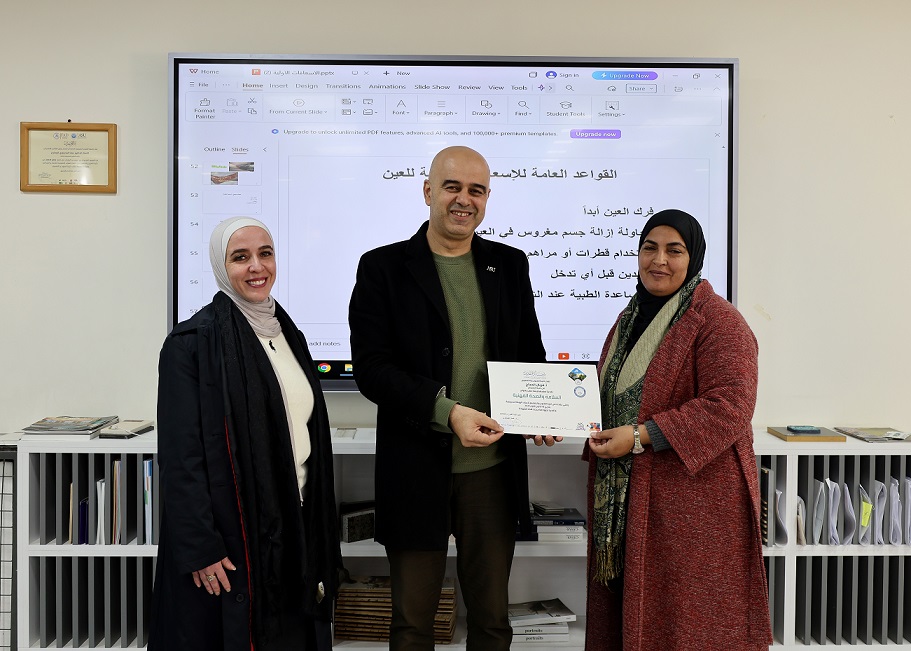 قدّمت الورشة كل من الأستاذة فريال الحجاج، والأستاذة لينا جعفر، والأستاذة أماني أبو شحادة من كلية التمريض، وفي ختام الورشة كرّم عميد كلية الفنون والتصميم الأستاذ الدكتور عماد الفحماوي المحاضِرات، مثمّنًا دورهن ودور كلية التمريض الدائم في تقديم هذه الورش التوعوية المهمة، ومشيدًا بجهود لجنة الطوارئ في تنظيم وانجاح هذه الورش لما لها من دور فاعل في رفع مستوى الوعي وتعزيز ثقافة الإسعاف والسلامة المهنية.