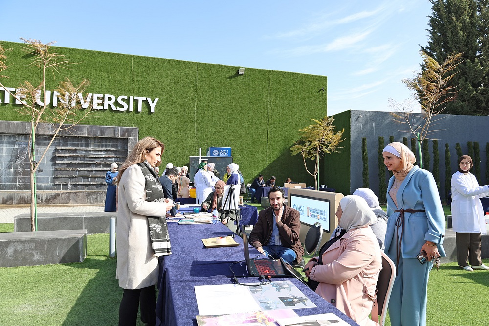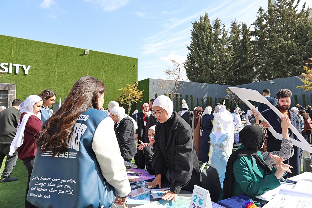 أقامت كلية الفنون والتصميم جناحًا تعريفيًا ضمن الفعالية التي نظمتها جامعة العلوم التطبيقية الخاصة لطلبة المرحلة الثانوية، استعرضت من خلاله تخصصاتها ومشاريعها الإبداعية، وذلك بحضور كادر أكاديمي وإداري من الكلية.