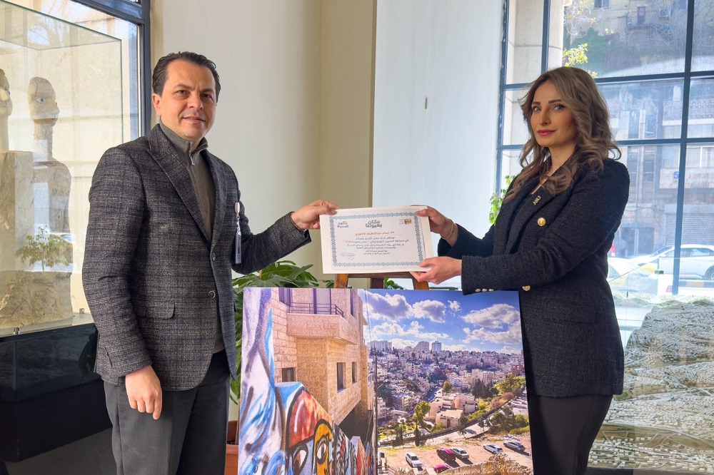 وقد حصلت الطالبة على جائزة نقدية بقيمة 500 دينار أردني، إضافة إلى تكريمها من قبل السيد معاذ الحديد مدير الهوية البصرية في أمانة عمّان الكبرى، تقديراً لعملها الفني الذي أبرز جمال الطبيعة وتلال مدينة عمّان بأسلوب بصري مميز.