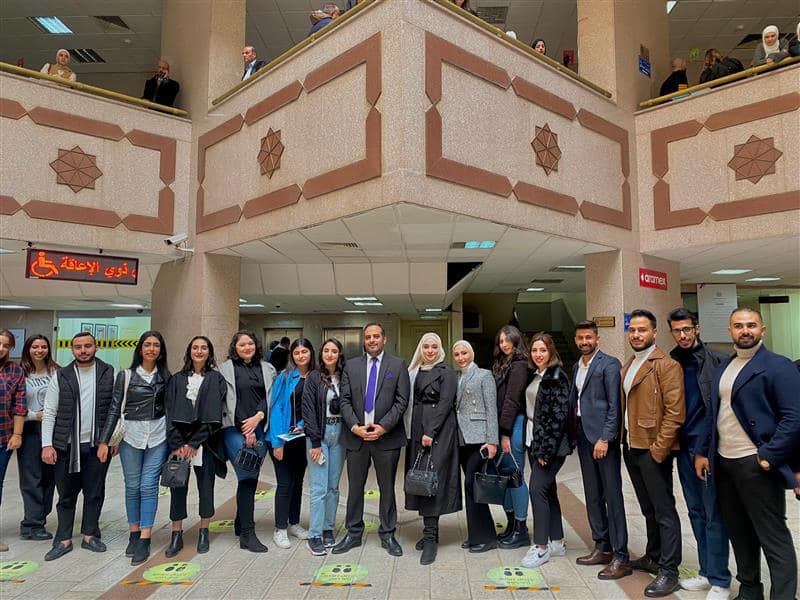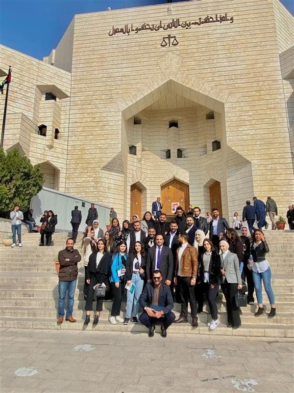 نظمت كلية الحقوق يوم الخميس الموافق 2022/11/24 زيارة ميدانية إلى محكمة بداية عمان (قصر العدل) لطلبة مادة (التطبيقات القضائية)، وذلك بهدف التعرف على إجراءات المحاكمات المدنية والجزائية لغاية ربط الجانب النظري بالتطبيق العملي. وقد اطلع الطلبة على كيفية تسجيل الدعاوى الجزائية والحقوقية، وحضروا بعض الجلسات في محكمة البداية في الغرف التجارية والأسرية والاقتصادية، كما تتضمنت الزيارة زيارة دائرة الكاتب العدل للاطلاع على الاجراءات المتبعة فيها.