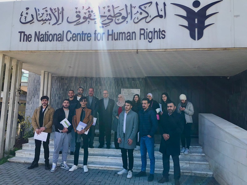 نظمت كلية الحقوق في جامعة العلوم التطبيقية الخاصة يوم الأربعاء الموافق 11/1/2023 زيارة ميدانية إلى المركز الوطني لحقوق الإنسان بهدف التعرف على مهام المركز التي تتركز على حماية وتعزيز حقوق الإنسان بنشر ثقافتها ومراقبة أوضاعها، وقد تضمنت الزيارة لقاء مع سعادة الدكتورة ريم أبو دلبوح / ميسرة أعمال المركز الوطني لحقوق الإنسان، ومحاضرة عن حالة حقوق الانسان في الاردن قدمها من المركز المحامي عيسى المرازيق/ مدير إدارة التوعية والتدريب.