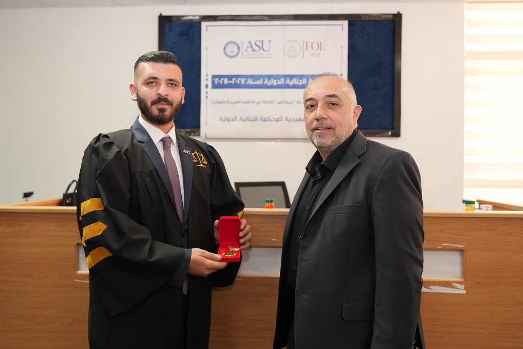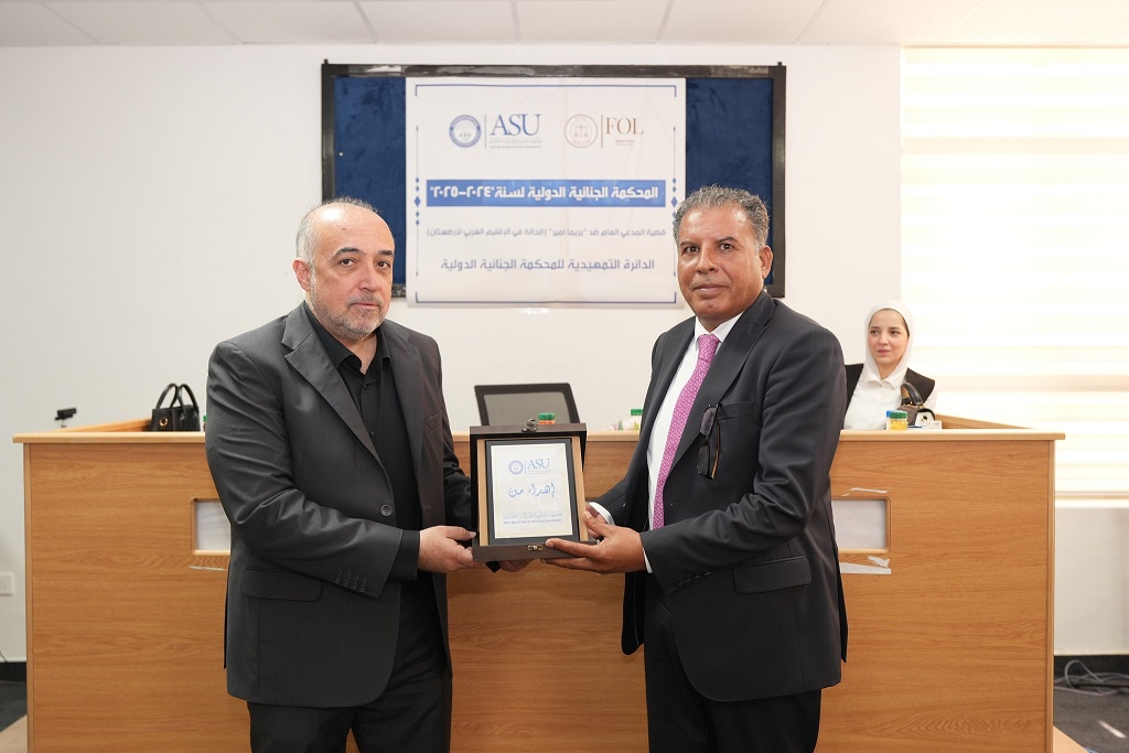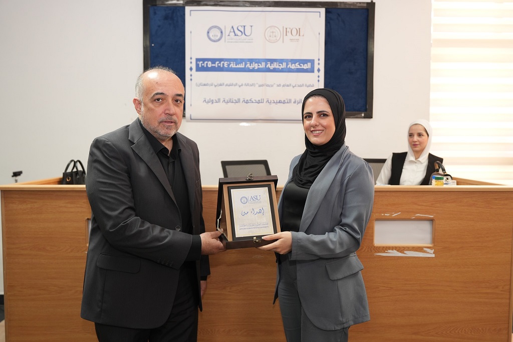 في إطار جهودها المتواصلة لتعزيز القدرات العملية لطلبتها في مجال القانون الدولي، نظّمت كلية الحقوق في جامعة العلوم التطبيقية الخاصة يوم الخميس الموافق 28/8/2025، المسابقة الصورية الداخلية الثامنة باللغة العربية، للفصل الدراسي الصيفي من العام الجامعي 2024/2025، تحت عنوان: "المدعي العام ضد بريما أمير – الحالة في الإقليم الغربي من أرضستان"، وهي محاكاة لجلسة أمام الدائرة التمهيدية في المحكمة الجنائية الدولية.