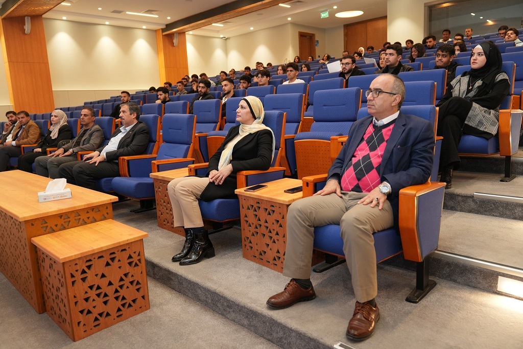عقدت كلية الحقوق يوم الأربعاء الموافق 19/11/2025 لقاءً تعريفياً للطلبة المستجدين في مدرج الحاج عبد الله أبو خديجة –رحمه الله–، بحضور عميد الكلية ورؤساء الأقسام وأعضاء الهيئة التدريسية. واستُهلّ اللقاء بالترحيب بالطلبة وتهنئتهم بانضمامهم إلى كلية الحقوق في جامعة العلوم التطبيقية الخاصة، مع التأكيد على تميز الكلية وبرامجها الأكاديمية. وتضمن اللقاء عرضاً لأبرز إنجازات الكلية خلال الأعوام الماضية، بالإضافة إلى شرح موجز لمكوّنات الخطة الدراسية والإرشادية وأهمية التزام الطلبة بمتابعة مسارهم الأكاديمي، إلى جانب التأكيد على المواظبة في حضور المحاضرات والالتزام بمتطلبات المساقات لتحقيق أفضل مخرجات تعليمية. وتناول العرض توضيح المهارات الأكاديمية والمهنية التي تنمّيها الكلية لدى الطلبة، وأساليب التعليم المعتمدة في الجامعة، إضافة إلى استعراض الأنشطة اللامنهجية مثل المحاكم الصورية والزيارات الميدانية لما لها من أثر في تنمية الخبرات العملية.