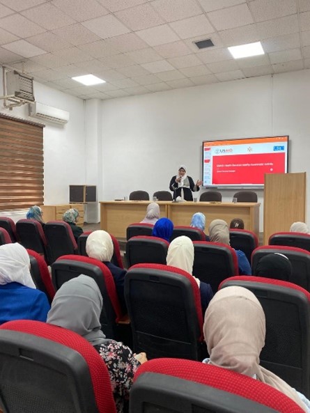 on Sunday 9/1/2024 in Ibn Al-Nafis Auditorium, where Prof. Susan Al-Majali, Dr. Raja Khater, Dr. Issam Adawi, Mr. Walid Ziada and representatives of the project (USAID Health Service Quality Accelerator Activity) Where it was agreed upon as a recommendation from the seminar to hold many training courses in the future in cooperation with USAID to contribute to enhancing the quality of health care.