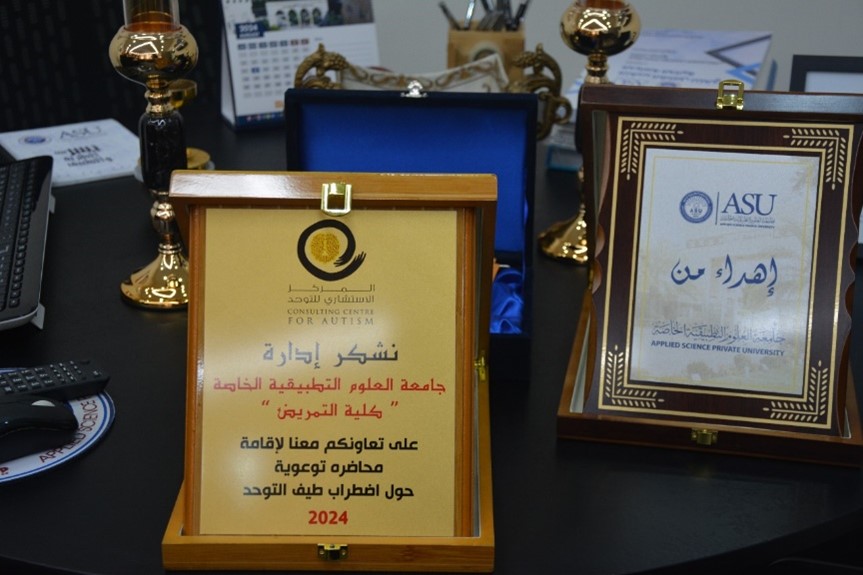 The Faculty of Nursing at the Applied Science Private University held an awareness lecture on "Autism Spectrum", in collaboration with the Autism Consulting Center and in the presence of guests from the Saudi Cultural Attaché. The lecture aimed to raise awareness about the autism spectrum, its symptoms, and ways to deal with it, as well as to highlight the importance of community support and education in improving the lives of individuals affected by this condition. It also emphasized the need for cooperation between educational and healthcare institutions to support those affected and create an inclusive environment.
