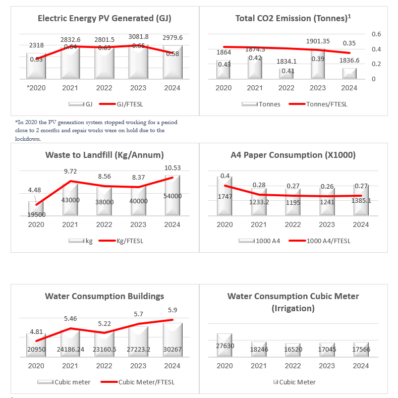 In recent years, our university has made significant strides in reducing both energy consumption and CO2 emissions. These accomplishments are a result of several key initiatives, including the implementation of targeted energy policies, rigorous monitoring of energy use, and active participation in awareness and educational campaigns alongside relevant stakeholders. These efforts not only demonstrate our commitment to sustainable practices but also significantly contribute to our overarching goal of sustainable development