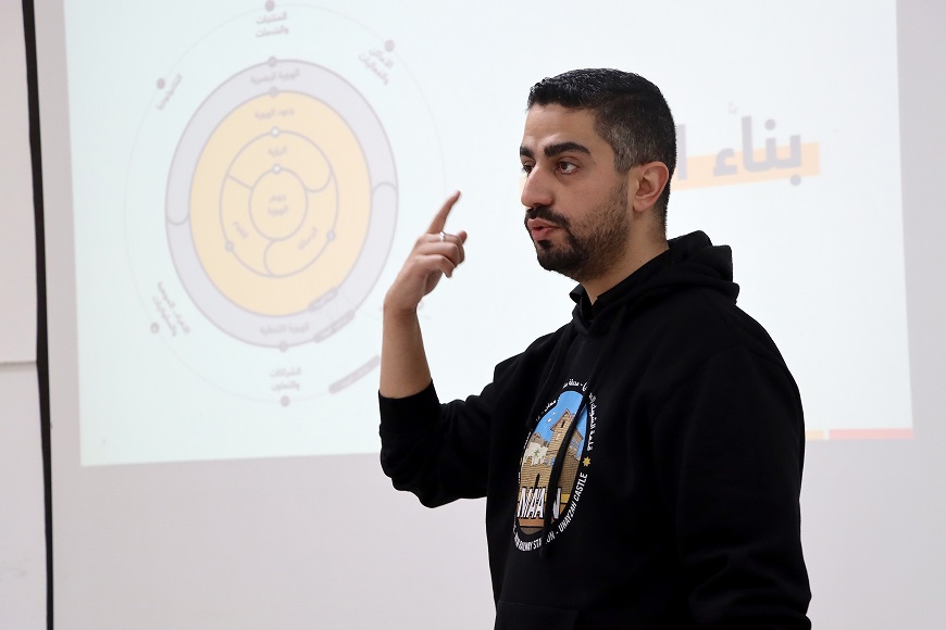 The designer and social media activist, designer Mohamed Al-Fahmawi, gave an introductory lecture on the latest methods used to promote through social media and build digital identity, At the College of Arts and Design on Wednesday 12/27/2023. Al-Fahmawi explained the method of preparing the designer’s CV and file in a way that includes the information necessary to be provided to the service applicant or when applying for various jobs. It is worth noting that the designer, Mohamed Al-Fahmawi, completed his studies in graphic design and is currently specialized in the field of managing and producing digital content for social media platforms. He is also the founder of the Golden Triangle Project.
