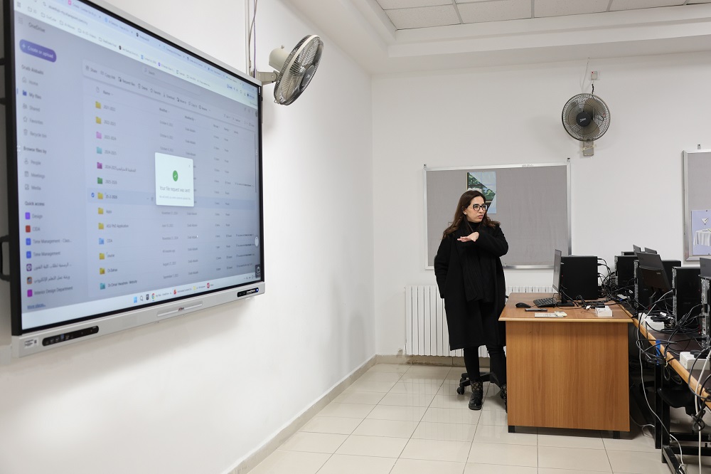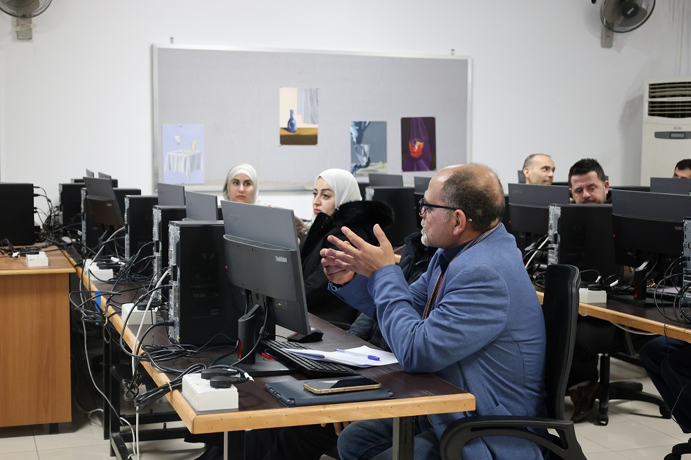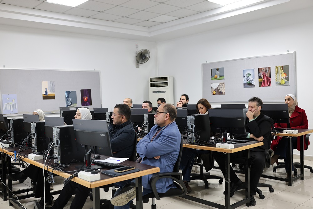 The workshops were delivered by a group of distinguished faculty members: from the Department of Graphic Design and Visual Communication, Lec. Hadeel Mustafa and Lec. Hassan Al-Tarawneh; and from the Department of Interior Design, Lec. Oraib Al-Sbaihi and Lec. Izzeldeen shela. They shared their practical expertise and presented the latest digital tools that help enhance academic work.