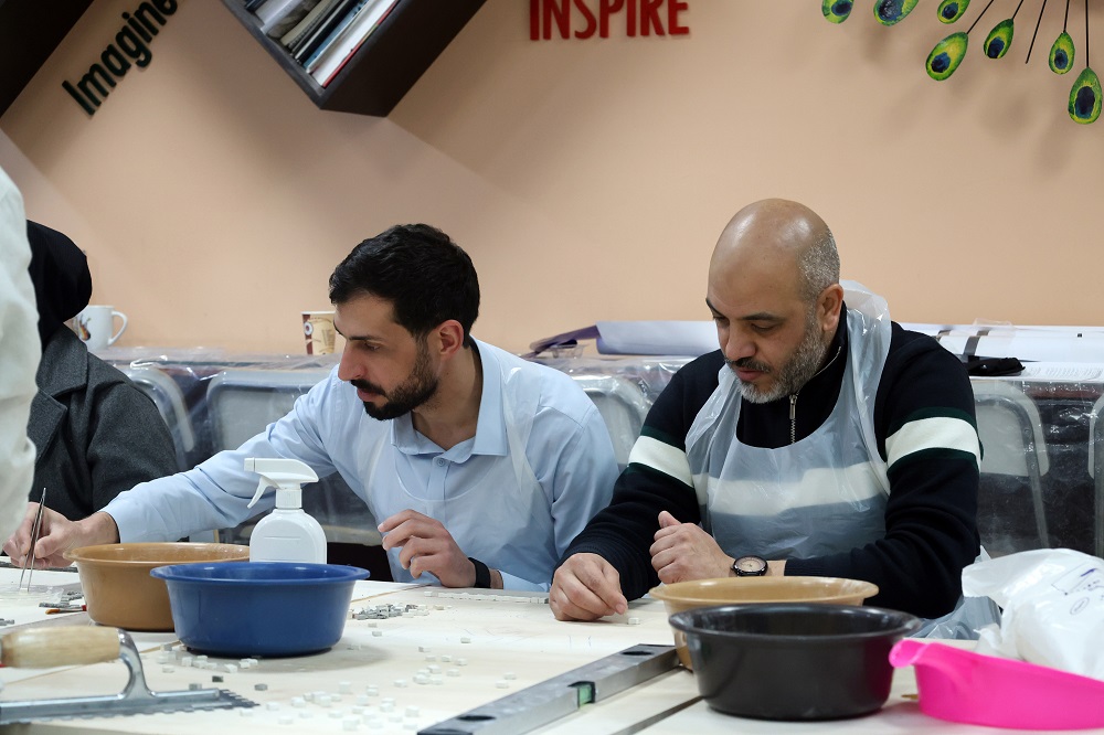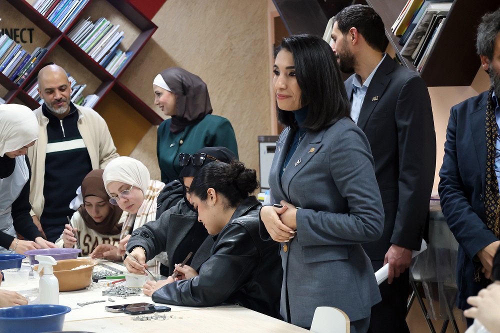 The Faculty of Art and Design at Applied Science Private University organized a specialized workshop in mosaic art, during which a collection of mosaic artworks is being created to decorate several entrances of the Faculty. This initiative aims to enhance the aesthetic appeal of the space while reflecting its artistic identity and spirit.