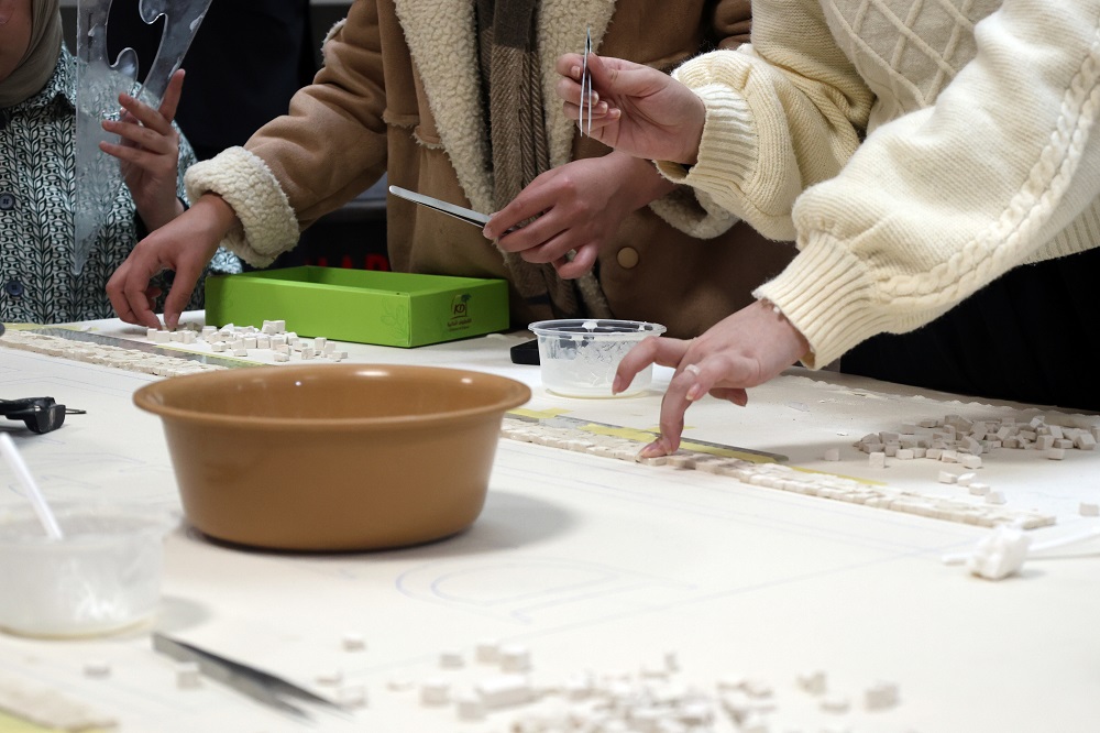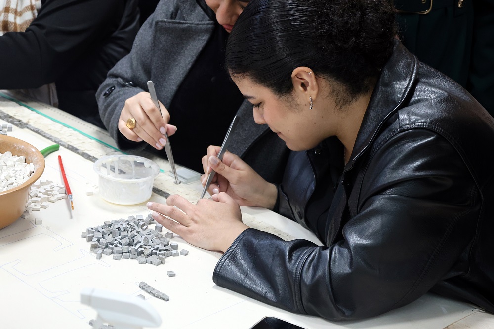 A number of students from various disciplines within the Faculty participated in the workshop, where they were given the opportunity to explore mosaic techniques and methods, and to apply them practically within an interactive learning environment that fosters their artistic skills.