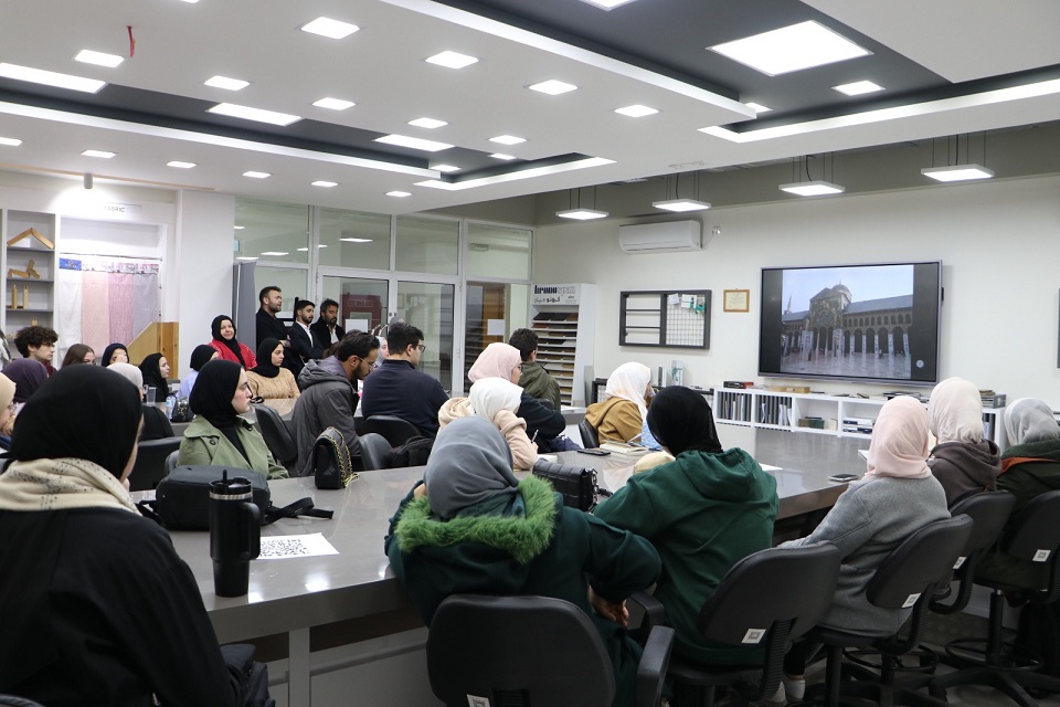 The Faculty of Art and Design, in collaboration with the Office of International Relations, hosted a lecture for students titled "Islamic Arts and Architecture Through the Ages". Dr. Mahmut Sami Kanbaş, Assistant Professor of Islamic History and Arts at Marmara University, Turkey, gave the lecture.