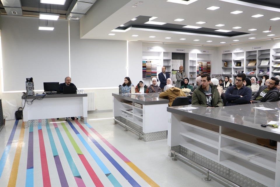 The lecture witnessed strong attendance from both students and faculty members. Prof. Feras El Hajji, Vice President of the University, and Prof. Emad Al-Fahmawee, Dean of the Faculty of Art and Design, welcomed the guest speaker. They expressed their gratitude and pride in the ongoing and fruitful collaboration between Applied Sciences University and Marmara University, along with its visiting faculty members.
