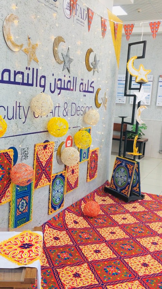 In a demonstration of the creative spirit of the students in the Fashion and Accessories Design Department at the Faculty of Art and Design, a special workshop was organized to decorate the faculty’s main entrance in celebration of the arrival of the holy month of Ramadan. This workshop was more than just a student activity; it was a true expression of authentic Jordanian and Arab culture and heritage, while also fostering values of collaboration and teamwork among students.