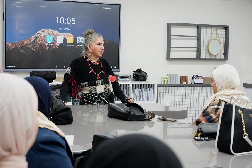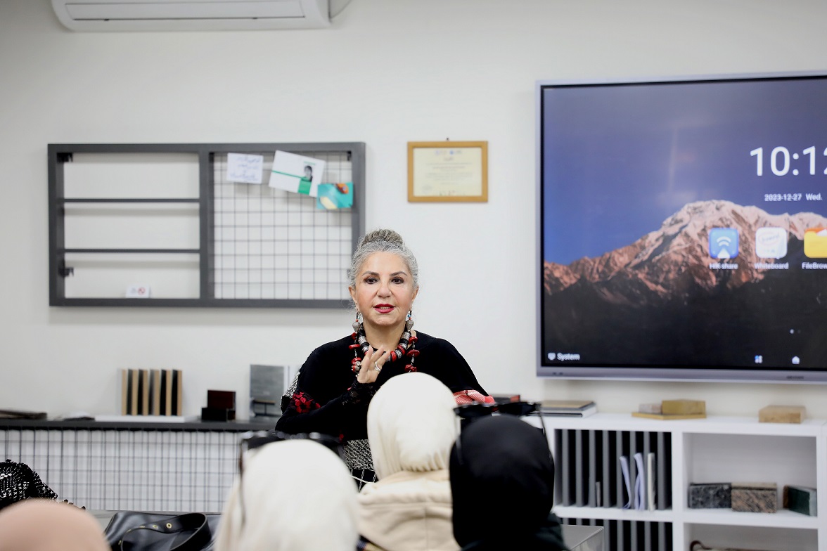 International designer Hanaa Sadiq gave a lecture at the College of Arts and Design, on Wednesday 12/27/2023. Under the title of Arab and international fashion trends. Designer Sadiq discussed the approach that promising fashion designers should follow to create brands with an Arab and local flair. Reviewing the beginnings of this profession in Iraq, Egypt, and Palestine, where the first fabric and dye industries were. Sadiq revealed various aspects of her career, hoping to encourage novice designers to adopt a design approach inspired by the local and Arab environment.