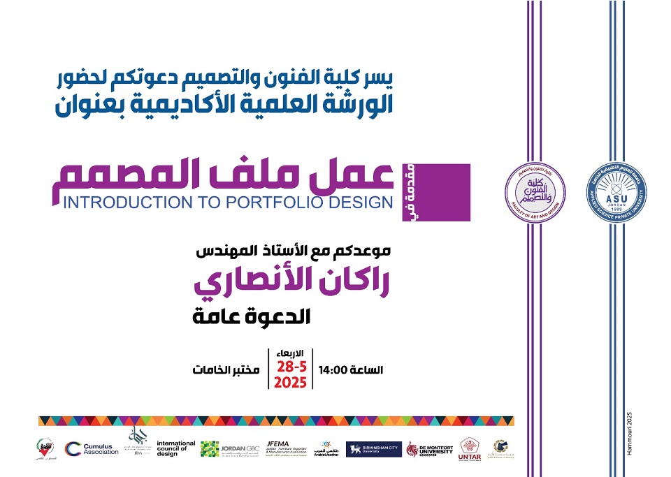 The Faculty of Art and Design at Applied Science Private University organized a simplified training workshop titled "Creating a Designer’s Portfolio," delivered by Engineer Rakan Al-Ansari.